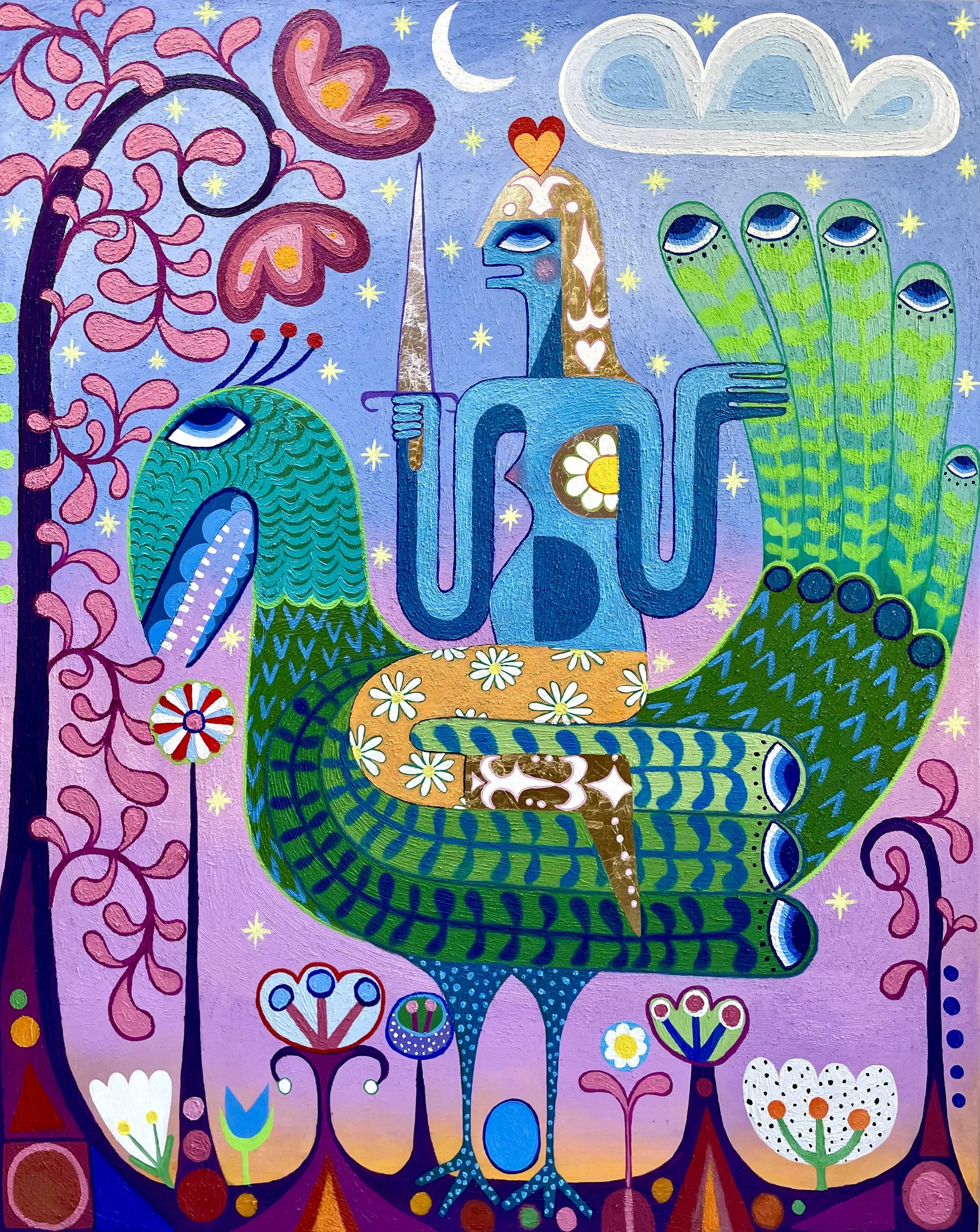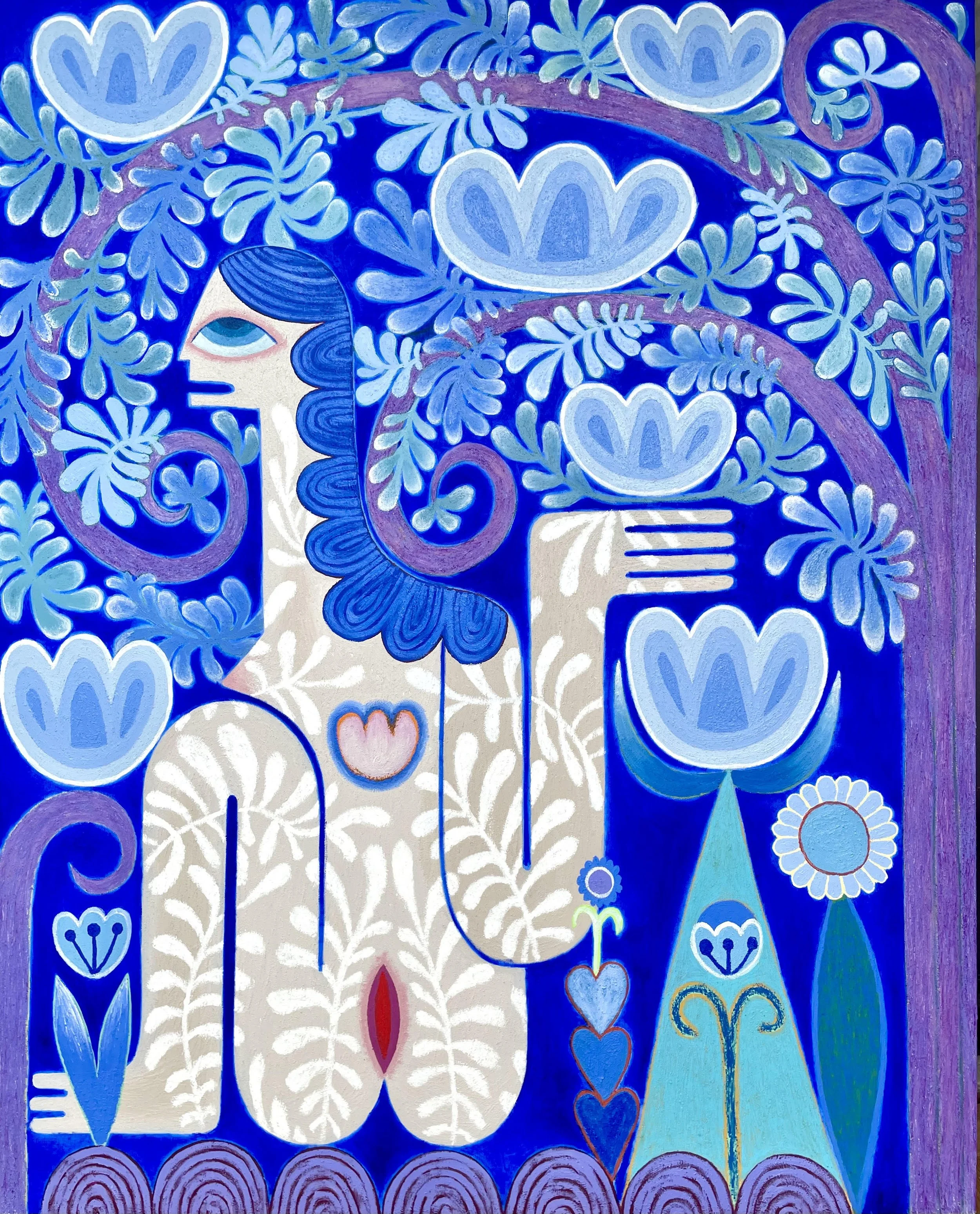 In "New Beginnings," Rosenkilde explores femininity, gender roles, and politics by depicting women in different roles. She plays with well-known narratives, symbolism, and archetypes in works such as "Venus in Blue," "I Am The Flowers, You Are The Bee," "Resurrection Of Ophelia," and "Anima," challenging the viewer to confront the continued topicality and complexity of these themes.